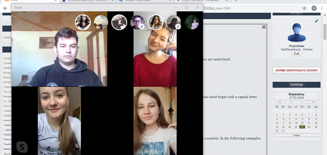Минулі два тижні самостійної роботи дали змогу протестувати усі можливі платформи та форми роботи. Окрім онлайн платформи університету d-learn.pu.if.ua, кожна група обрала зручний для себе формат для спілкування за допомогою програм Zoom, Skype, Microsoft Teams, Google Handouts та ін. Інтерактивні форми роботи доповнюють програми Menti, Kahoot та Google Forms.