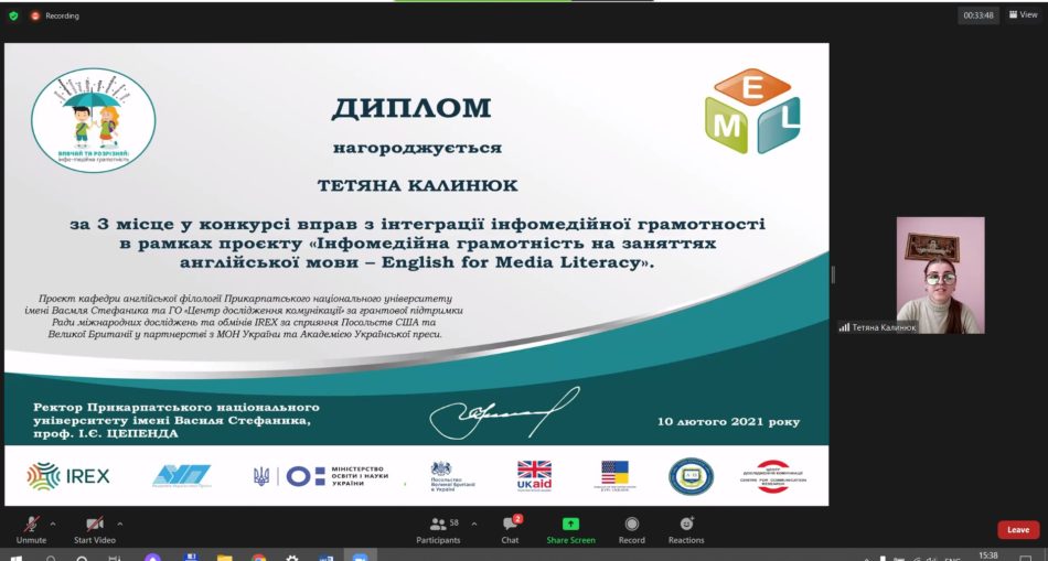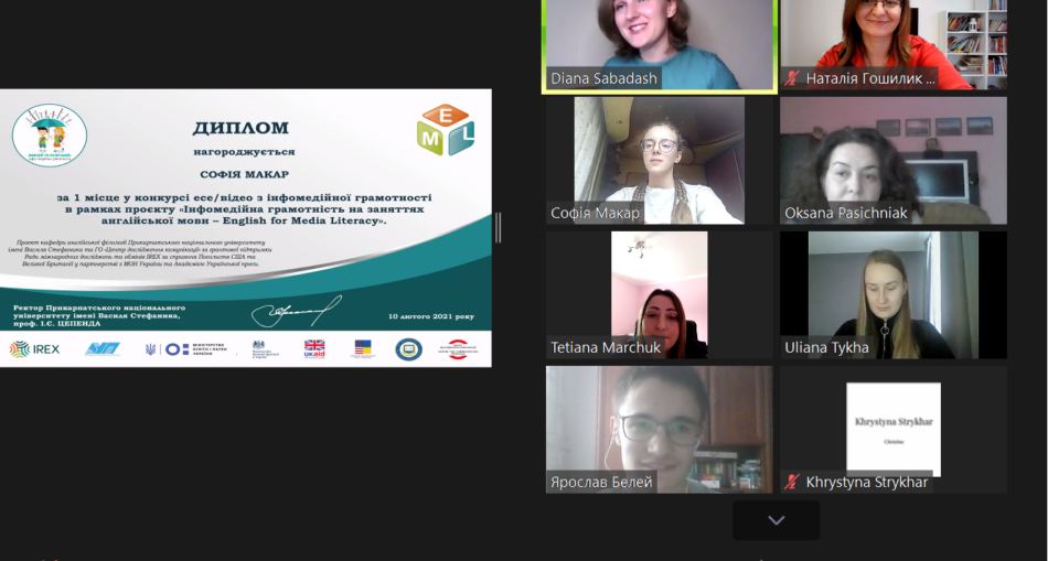 10 лютого 2021 року відбувся онлайн підсумок проєкту «English for Media Literacy – Інфомедійна грамотність на заняттях англійської мови».