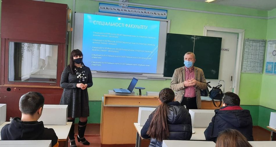 В рамках профорієнтаційної роботи викладачі кафедри французької філології доцент Білас Андрій Андрійович та асистенти Крук Зоряна Миколаївна та Луцик Наталія Миколаївна відвідали Обертинський ліцей Тлумацької районної ради Івано-Франківської області. За цікавою та невимушеною розмовою з випускниками представили факультет іноземних мов та його спеціальності, надали інформацію про можливості працевлаштування після закінчення навчання.