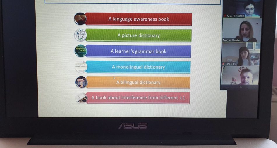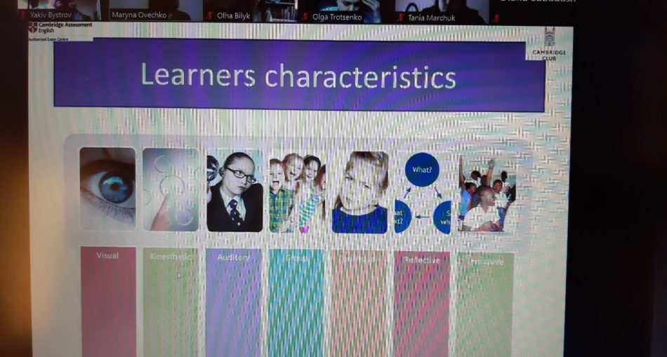 На першому онлайн-семінарі із серії тренінгів професійної майстерності, проведеному 25 лютого 2021 року викладачі кафедри ознайомилися із технологіями підготовки і проведення міжнародного іспиту TKT (Teaching Knowledge Test). Завідувач кафедри англійської філології, проф. Яків Бистров та доцентки кафедри, к.ф.н. Ольга Білик, Наталія Іванотчак, Наталія Пилячик, Тетяна Марчук, Діана Сабадаш, Ольга Троценко спільно з представницею мовного центру “Cambridge Club” Мариною Овечко обговорили питання студентоцентрованого підходу до навчання, адаптації навчальних матеріалів під потреби студента, а також передумови створення сприятливого навчального середовища. Іспит ТKT з лінійки Кембриджських тестів є спеціалізованим міжнародним іспитом професійного розвитку вчителя, який дає змогу підтвердити кваліфікацію вчителя англійської мови для роботи в будь-якій країні світу. Без сумніву, цей тест допоможе студентам освітніх рівнів “бакалавр” і “магістр” розширити їхні професійні перспективи у навчанні англійської мови школярів і дорослих.