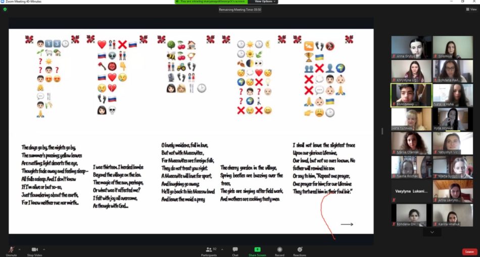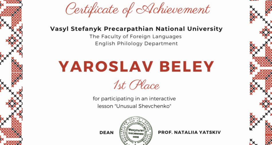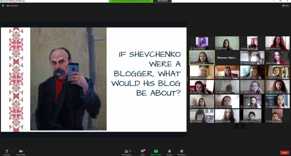 Англомовний творчий онлайн-захід “Незвичний Шевченко”, організований групою студентів А-21(а) та доцентом кафедри англійської філології Наталією Пилячик, зібрав близько 100 поціновувачів творчості генія української поезії. Учасниками заходу були студенти факультету та велика кількість учнів шкіл та ліцеїв Івано-Франківщини, а саме: Ліцей № 23 ім. Романа Гурика, Ліцей № 10, Ліцей №25, Ліцей № 1, Ліцей №7 Івано-Франківської міської ради, Снятинський ліцей ім.А.Лотоцького, Богородчанський Ліцей № 1, Природничо-математичний ліцей, Підліський ліцей, Фізико-технічний ліцей при Івано-Франківському національному технічному університеті нафти і газу, Долинський ліцей №6 “Європейський”, Обертинський ліцей, Приватна школа-садок “Перша-Ластівка”. Школярі, ліцеїсти та студенти Прикарпатського національного університету імені В. Стефаника мали змогу подивитися на постать та творчий потенціал Т. Шевченка з іншого боку. Учасники брали активну участь в інтерактивних іграх, палких дискусіях щодо творчості українського поета і художника та уявляли його у ролі сучасного блогера.