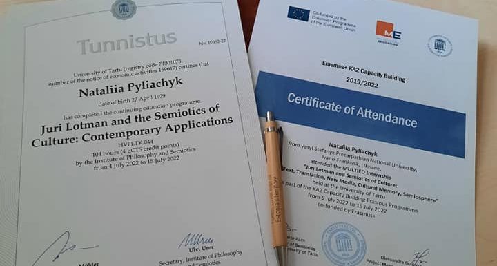 Наталія Пилячик, доцентка кафедри англійської філології, успішно завершила двотижневе стажування #MultiEd #ErasmusPlus для викладачів українських університетів у дружньому Університеті Тарту (4-15 липня 2022). Незабутній науковий досвід, продуктивні та інтерактивні семінари, захоплюючі та спонукаючі до роздумів лекції викладачів Естонського університету розширили світогляд учасників проєкту в Екосеміотиці, Цифровій Семіосфері тощо. Злагоджена командна робота над навчально-методичним посібником на основі CLIL методології «Мова, культура та суспільство» зробила перебування в Тарту більш плідним та ефективним. Незабаром посібник має бути повністю готовий, щоб вже цієї осені його використовували як викладачі, так і студенти.