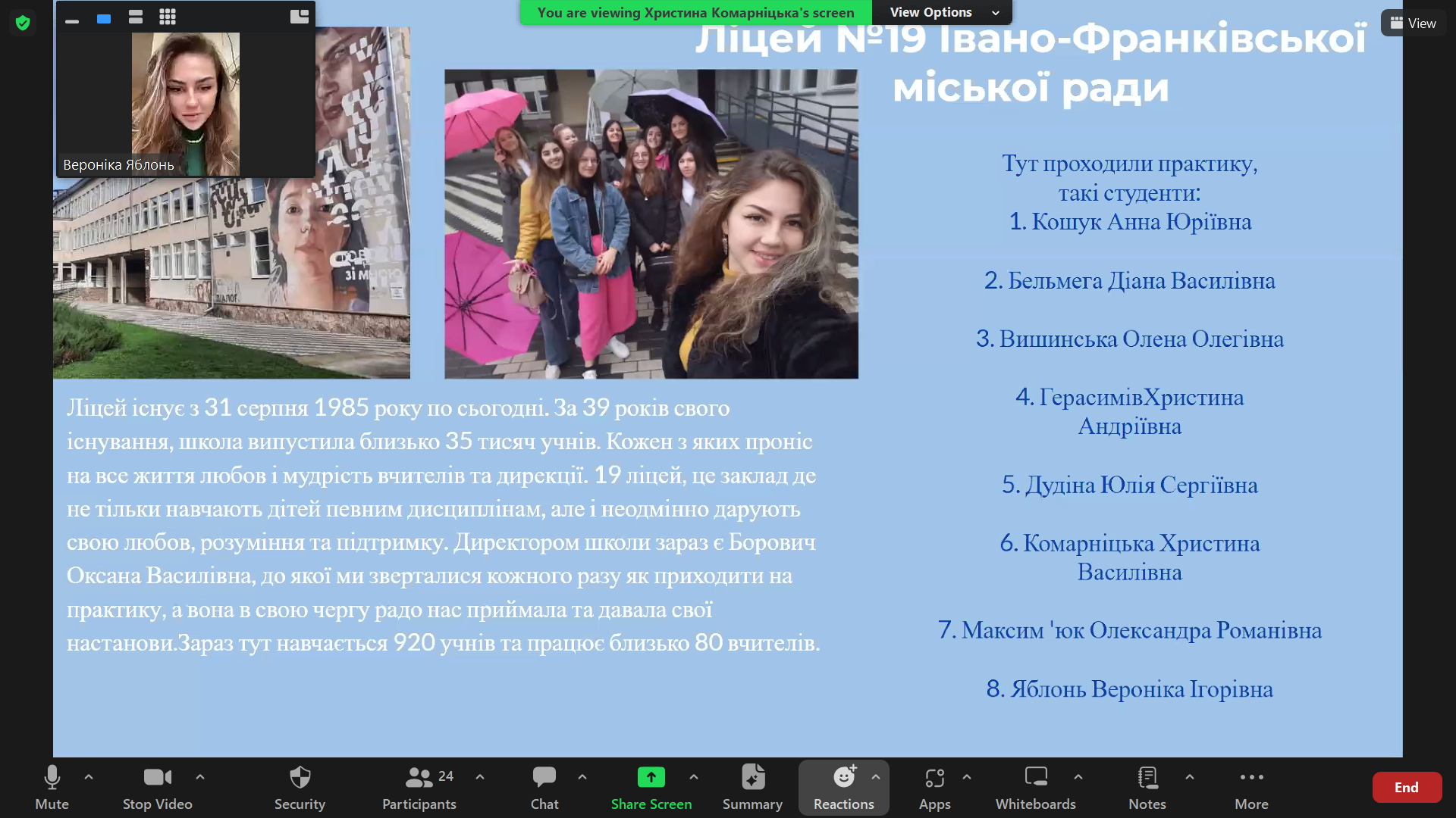 Як зазначили заступник директора з навчально-виховної роботи Ліцею №1 Івано-Франківської міської ради Ірина Бойчук та керівник-методист кафедри англійської філології Інеса Мельник, студенти продемонстрували належний рівень професійно-методичної підготовки, володіння м’якими навичками і цифрову грамотність, є повністю готовими до виконання трудових функцій вчителя і класного керівника закладу загальної середньої освіти.