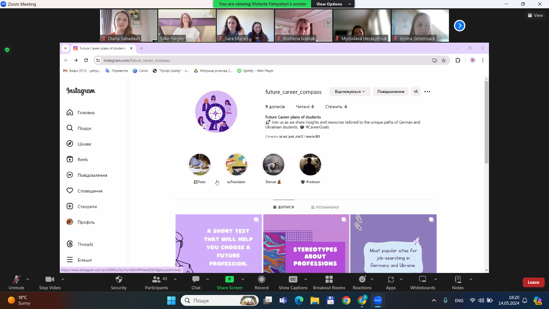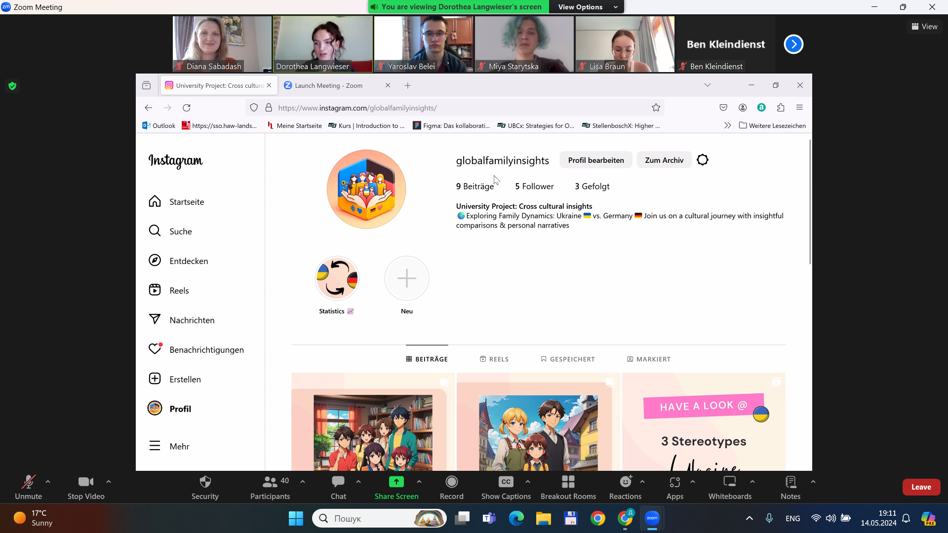 Учасники мали змогу креативно представити свої проєктні результати у вигляді коротких відео чи інтерактивних Instagram аккаунтів на вибір, використовуючи сучасні комунікативні тенденції для узагальнення своїх міжкультурних відкриттів.