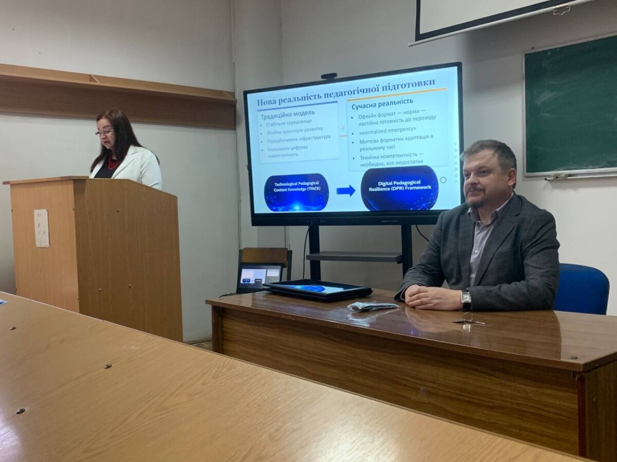 Доповідь кандидата філологічних наук, доцентки кафедри англійської філології К.В. ФОМІН на тему «Інтеграція штучного інтелекту та цифрових освітніх інструментів у викладанні іноземних мов: трансформація професійної компетентності викладача» була присвячена впливу новітніх технологій на освітній процес та професійний розвиток викладачів.
