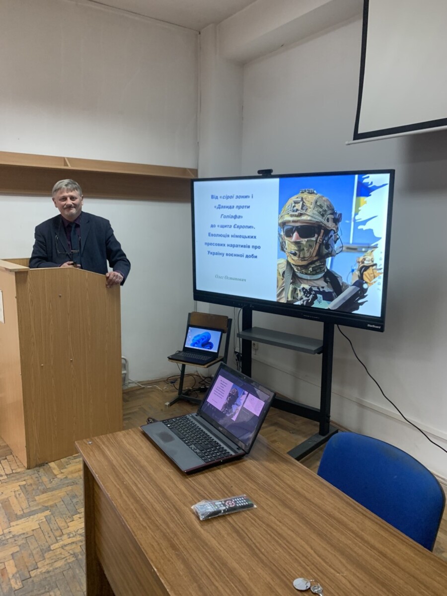 Окреме обговорення викликало ґрунтовне дослідження кандидата філологічних наук, доцента кафедри німецької філології О.Я. ОСТАПОВИЧА «Від «сірої зони» і «Давида проти Голіафа» до «щита Європи». Еволюція німецьких пресових наративів про Україну воєнної доби», у якому проаналізовано трансформацію образу України в німецькому медіапросторі.